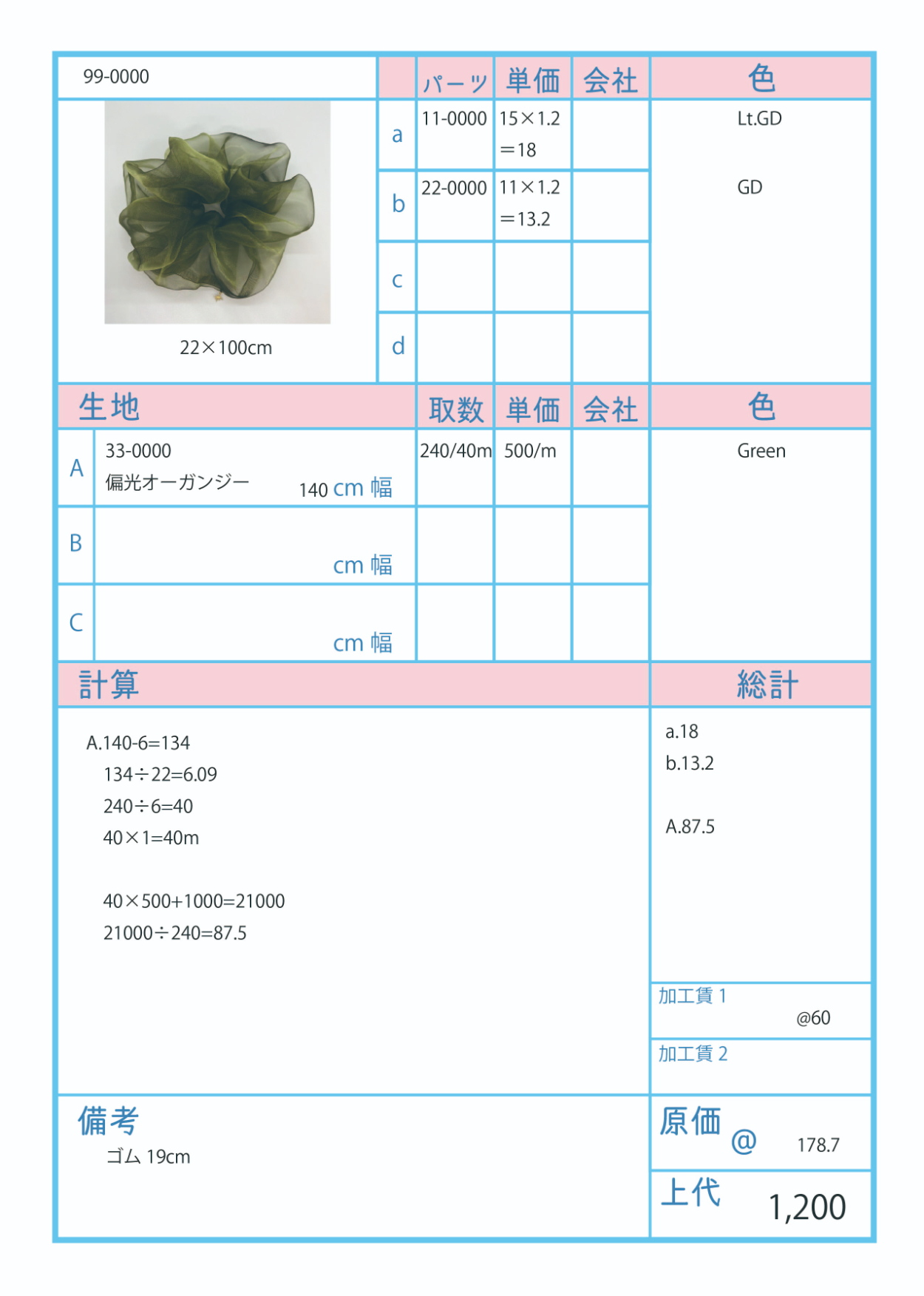 製作・単価計算
