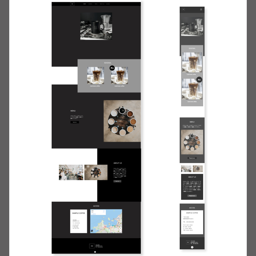 Wixを利用して作成。アパレルブランドを派生させて立ち上げたカフェというコンセプトを仮定。