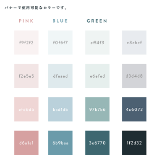 ・表紙の色をメインカラー、ピンクの補色関係にあり使用可能なカラーの緑をアクセ