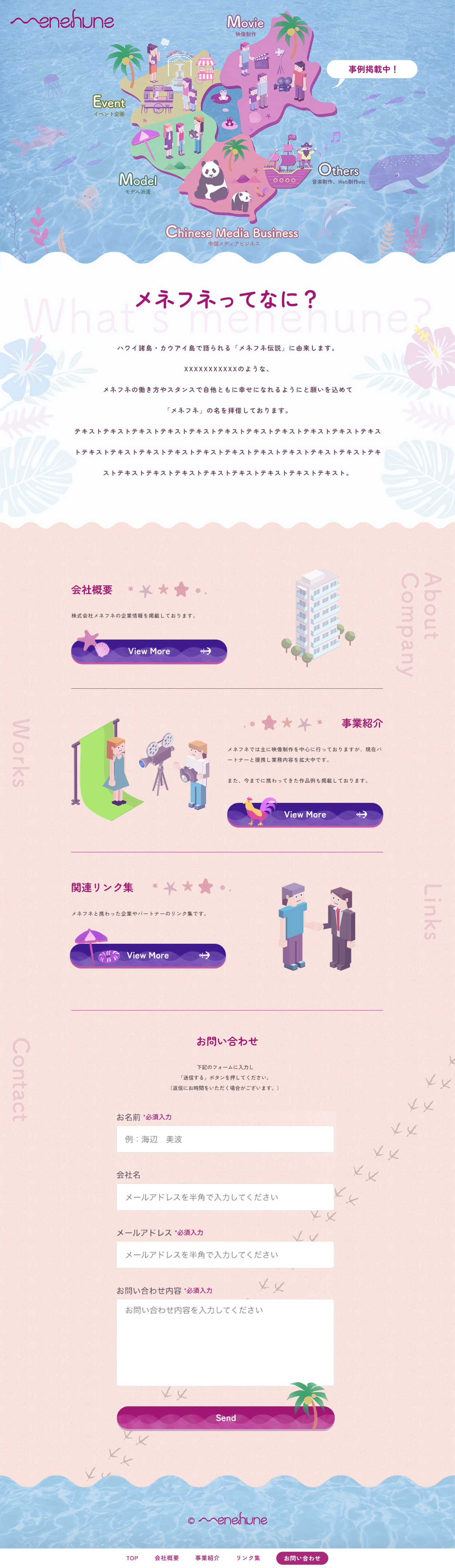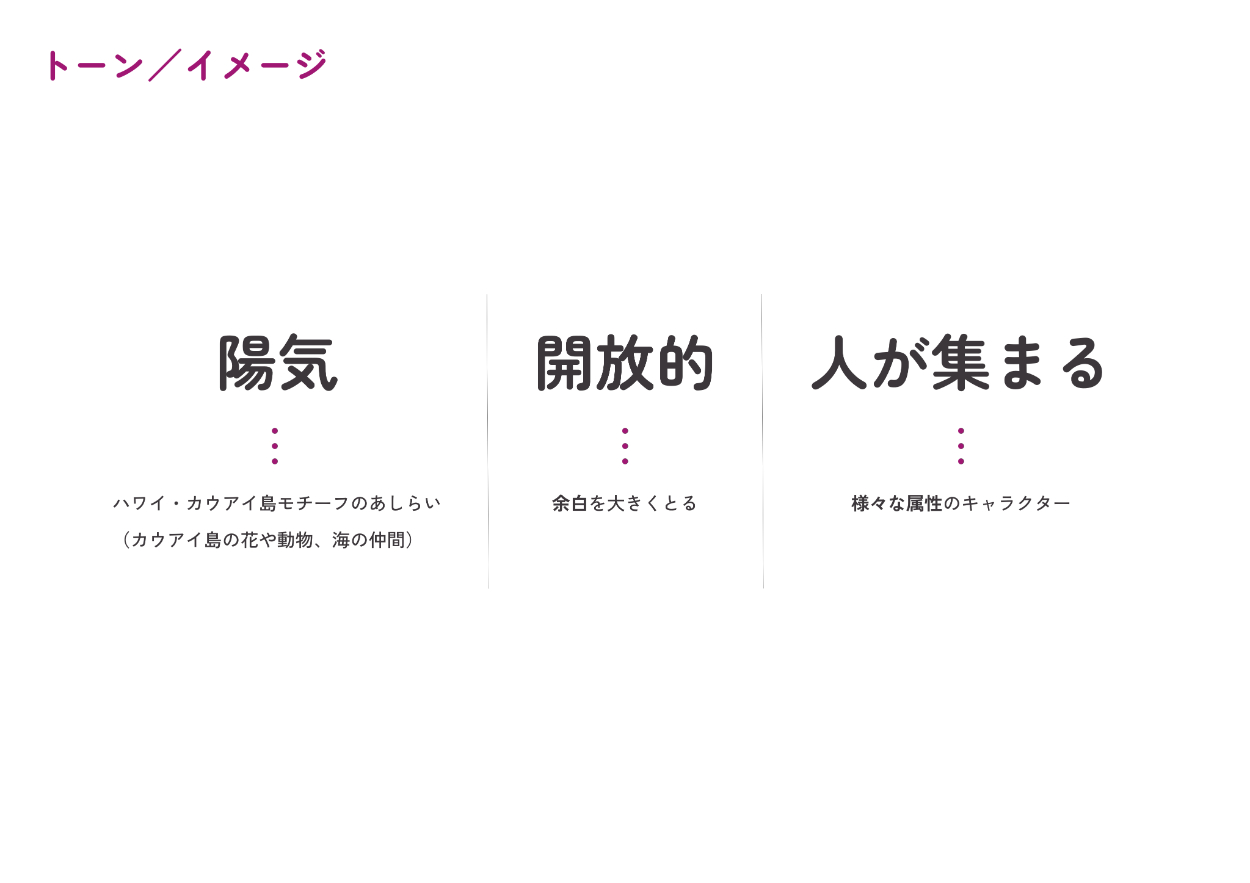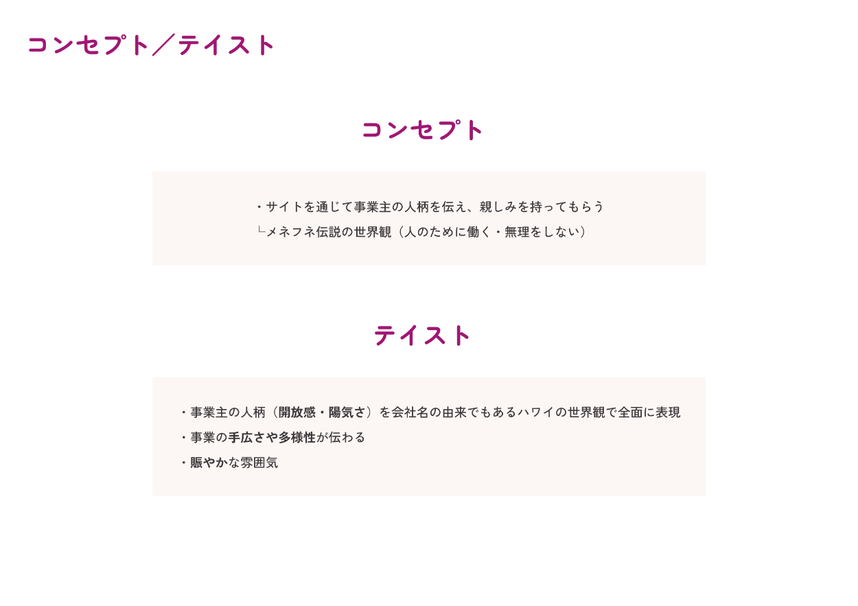 └事業主の人柄(開放感・陽気さ)を会社名の由来でもあるハワイの世界観で全面に表現