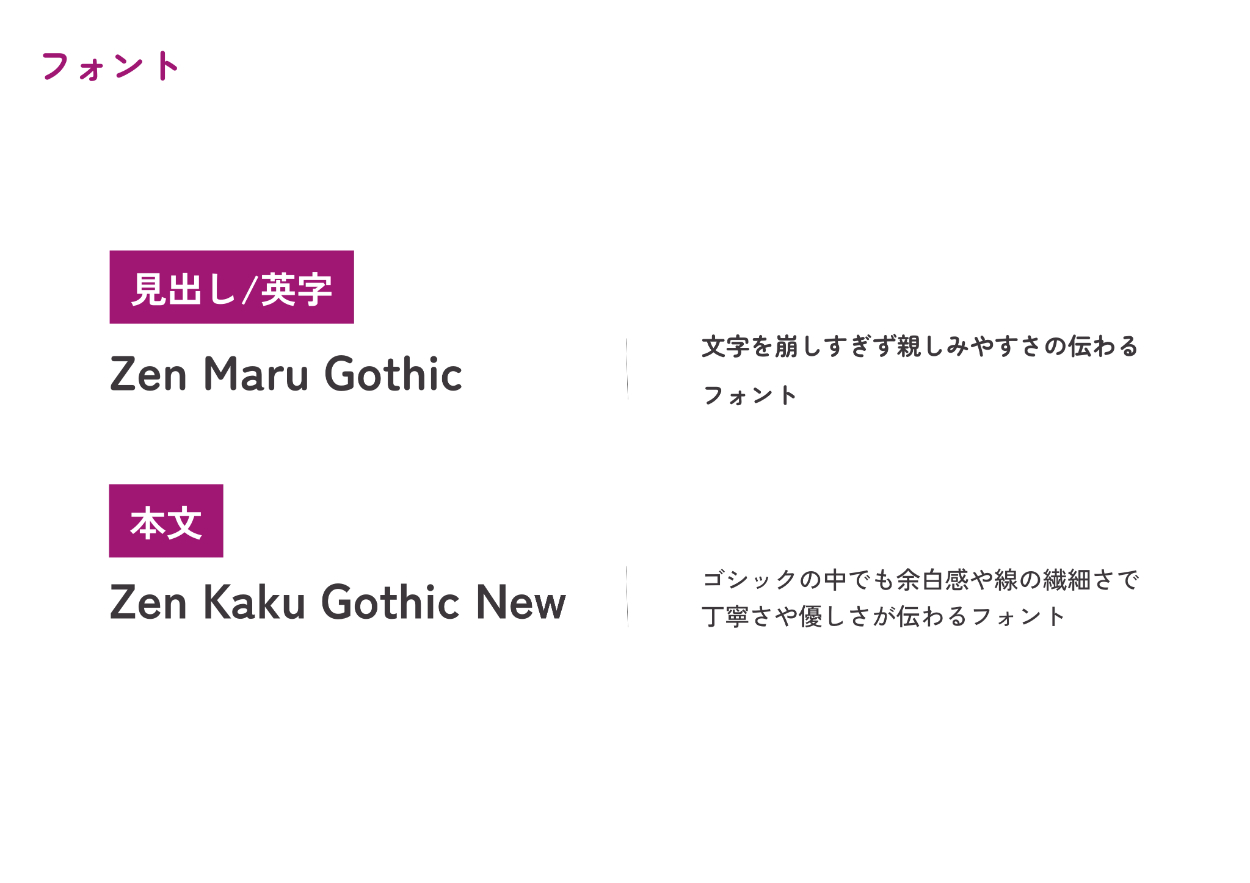 →フォントは暖かさの伝わる丸みや余白感のあるZen Maru Gothic / Zen Kaku Gothic書体