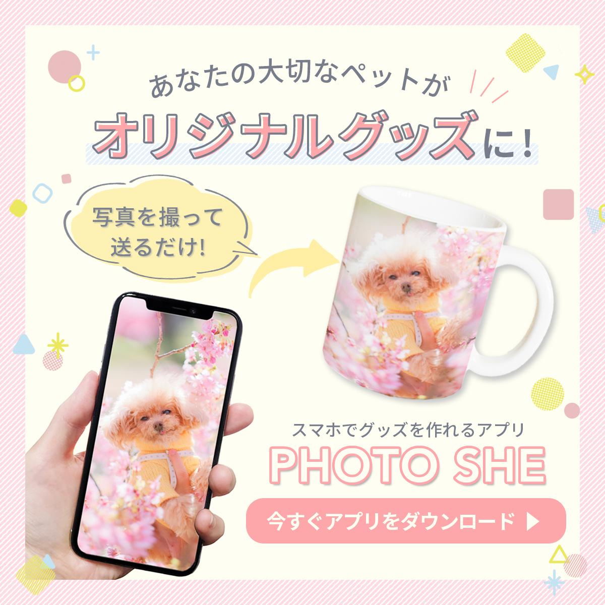 【自主制作】アプリのサービス訴求バナー satomi 複業webデザイナー OVERVIEW SHElikesのバナー課題を制作しました。 使用ツール:photoshop YEAR 2022 【要件】(架空)目的:アプリのサービス訴求ターゲット:ペットの写真を使ったグッズを作りたい人、スマホアプリで手軽にグッズにしたいと思っている人遷移先:アプリのダウンロードページ【制作】パステルカラーを用いて可愛らしいイメージに仕上げました。スマホとグッズの写真を入れることで、簡単にグッズを作れることを強調しました。