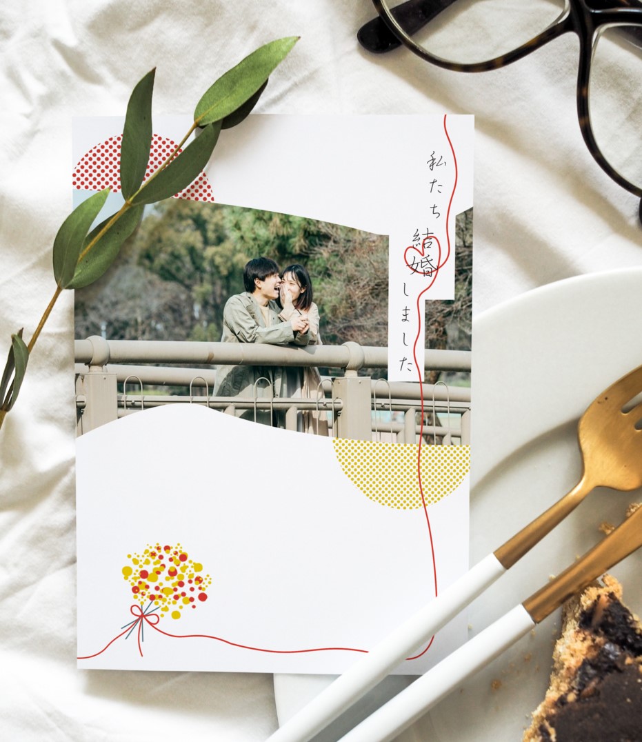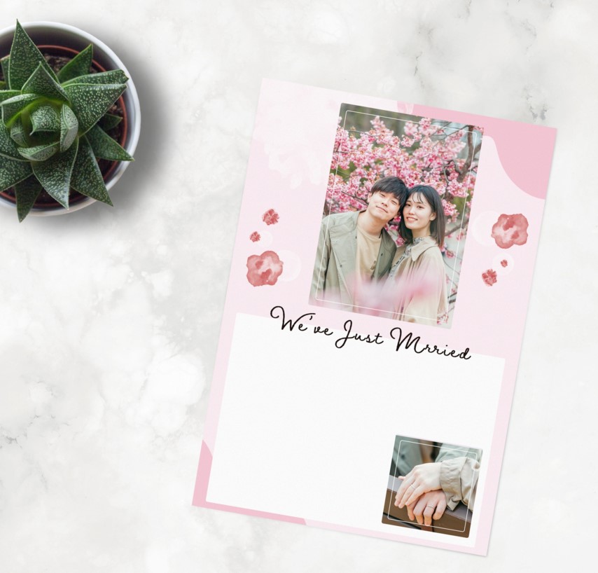 Y様よりご依頼いただき、結婚報告はがきを作成させていただきました。