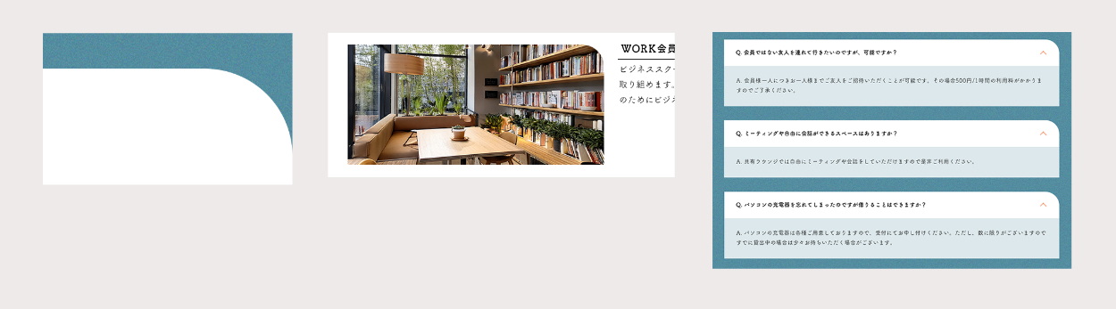 ・セクションや画像、FAQなどの右上を角丸にすることで直線的になりすぎず女性らしいしなやかさを表現しました。