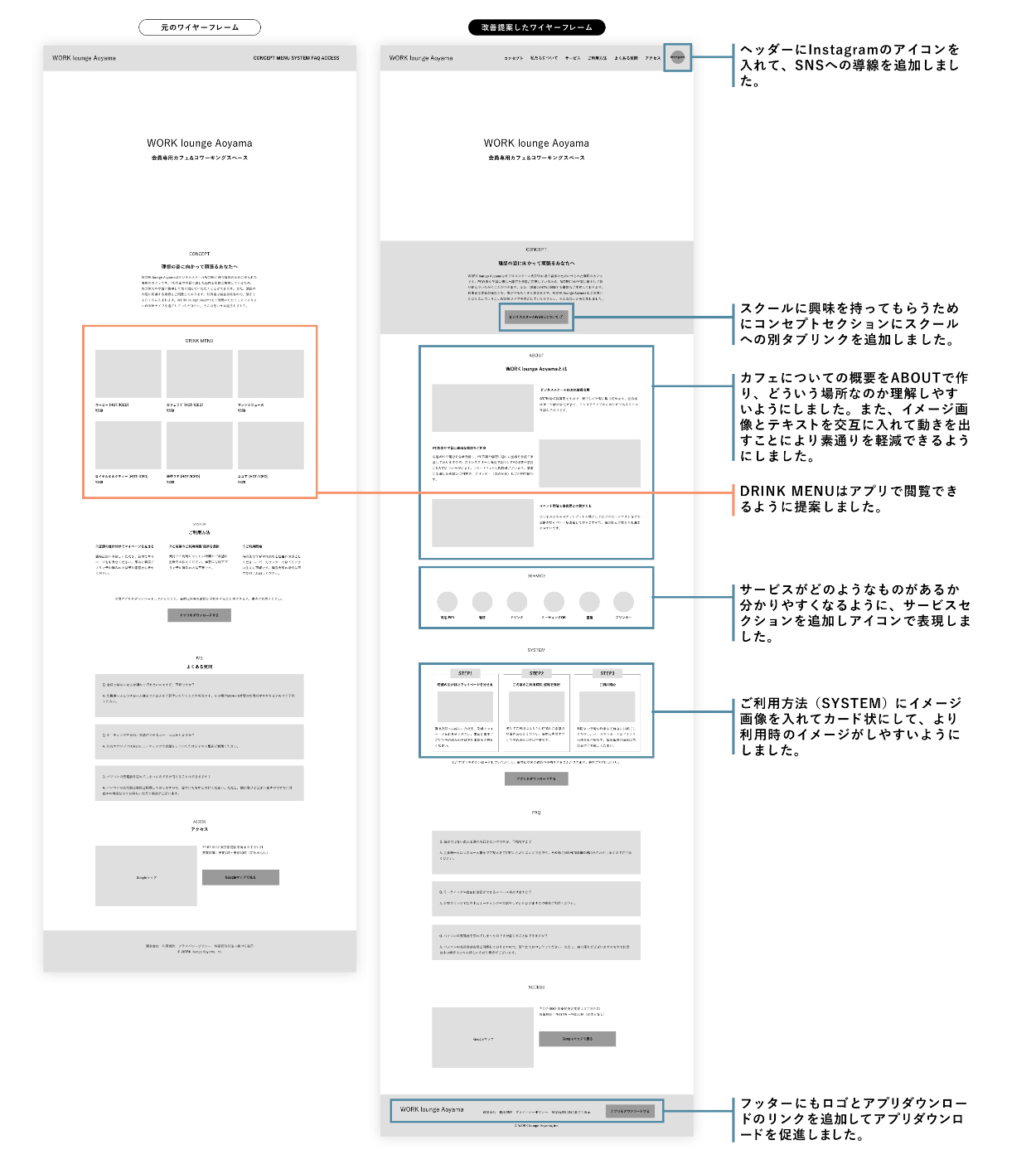 ・要件定義やペルソナをしっかり整理して理解することが重要。ここがしっかりしていないとワイヤーフレームもデザインもなぜそうしたのかという言語化が曖昧になってしまい本来の目的やデザインの方向性など全てがブレてしまうということを学びました。