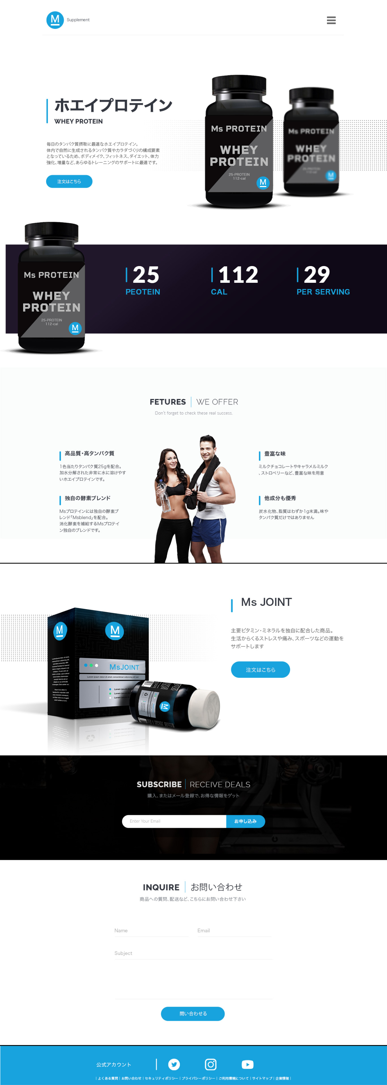 今回の商品はプロテインとして、多くの味を出している商品ではありますが、スポーツ後で、爽やかな感じを出したいと思い、青色を使用しました。プロテイン・サプリボトルや箱は、黒など無彩色を取り入れて、スタイリッシュなボトルを演出しました。