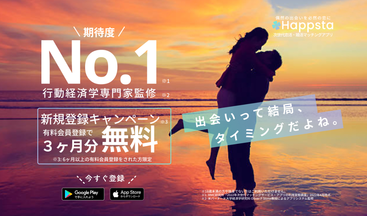既掲のLPのバナー広告である。 20代男女のカジュアルな出会いをテーマに作成した。おしゃれさ、ロマンチックさを夕陽の砂浜とマジックアワーで表現した。オレンジの持つ情熱的なイメージとシルエットによって閲覧者自身が同シチュエーションに置かれる妄想を掻き立て、記憶に残る作品にした。