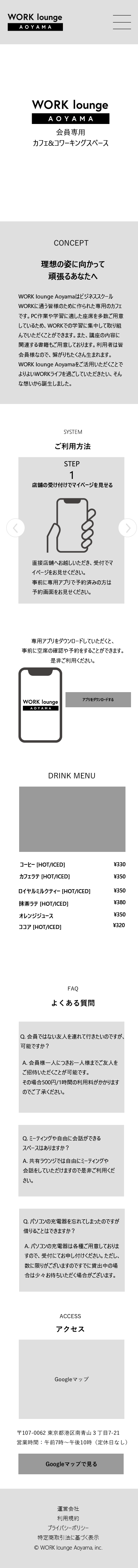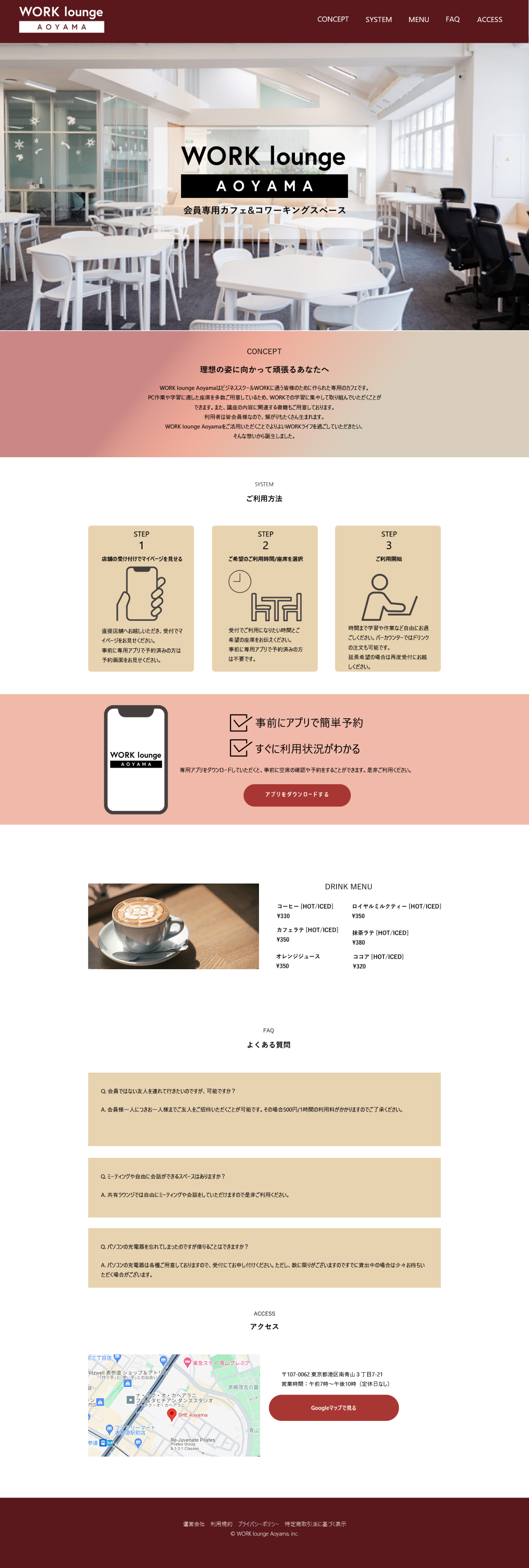 SHElikes MULTI CREATOR COURSEでの課題 会員制カフェ&コワーキングスペースのLP制作に取り組みました。 要件書とワイヤーフレームを元に、スマホのワイヤーフレームの制作とPCのデザインカンプを制作しました。