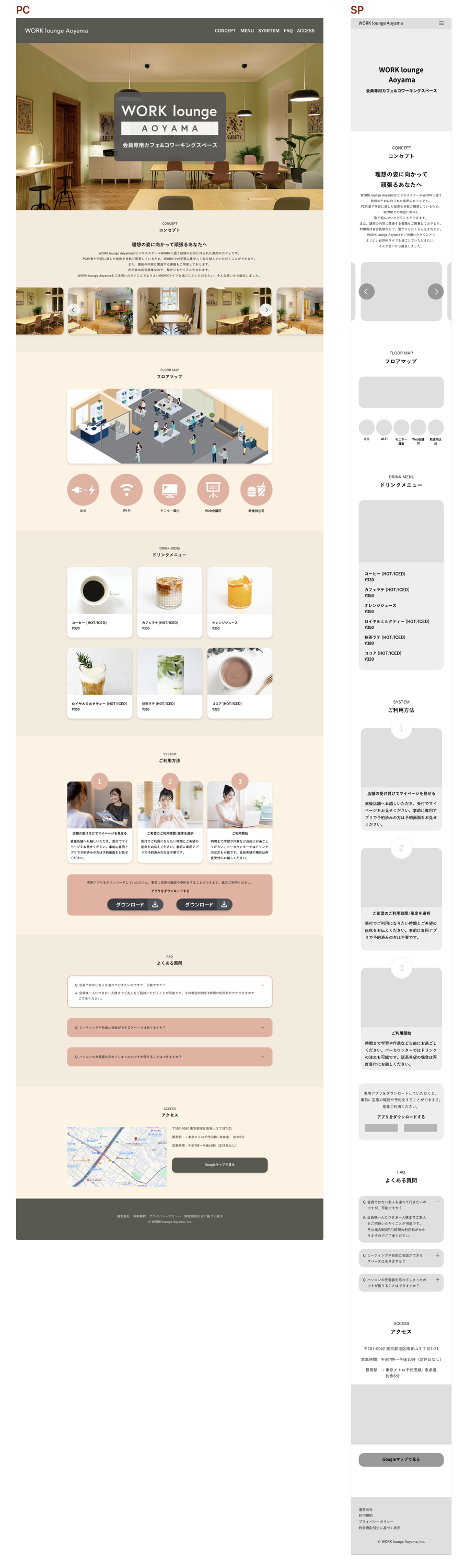 SHElikes MULTI CREATOR COURSEにて実施した、コワーキングスペースのLP制作課題になります。