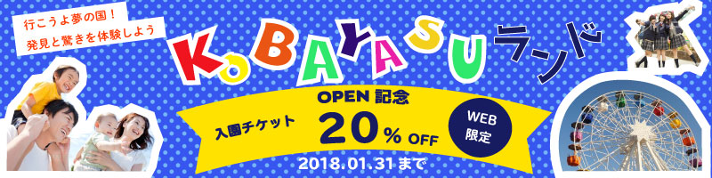 ⚫︎「KOBAYASUランド」の文字と割引特典のラベルの余白が狭い。