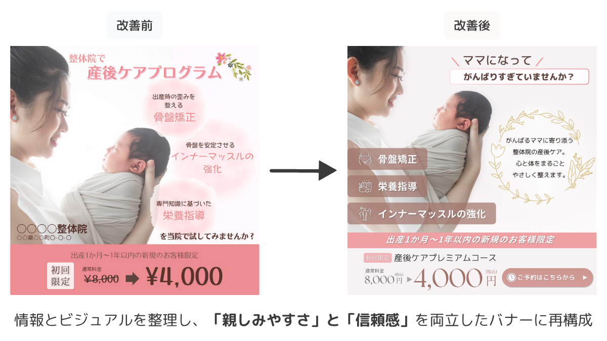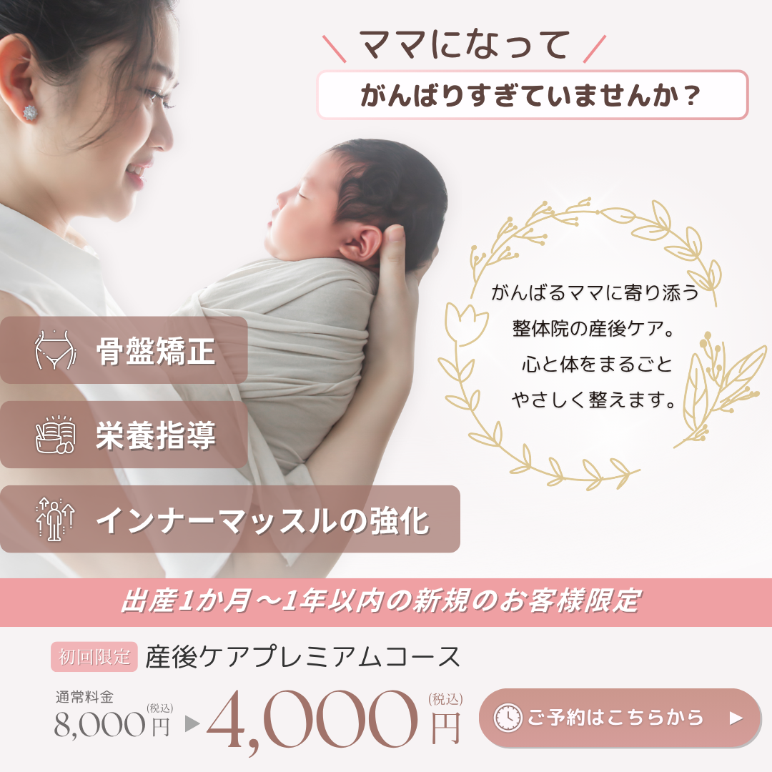 出産1か月〜1年以内の女性を対象に、初回限定の施術プランを訴求しています。