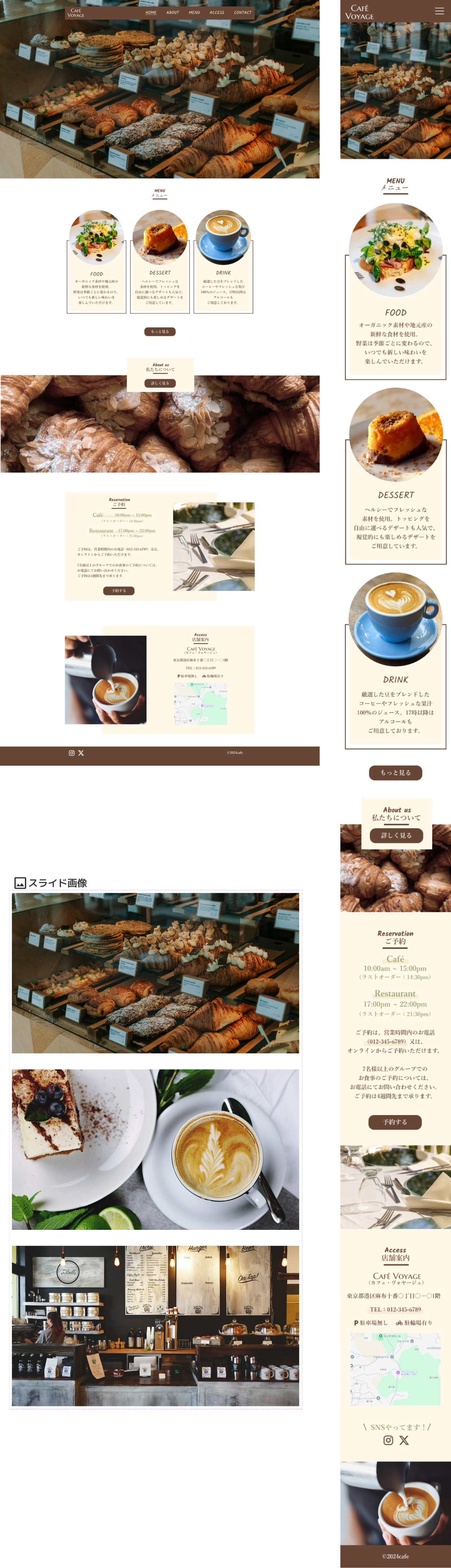 ・カフェの写真をスライドで設定することで、初めてサイトを訪問されたお客様がカフェの雰囲気を一目見て感じることが出来るようにしている