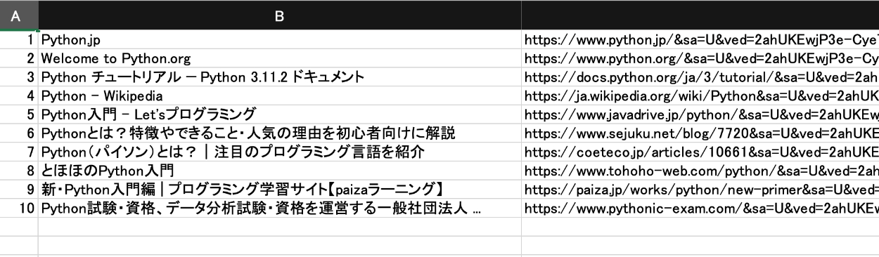 【スクレイピング】Google検索の上位サイトの情報を抽出しExcelファイルに自動で転記するツール