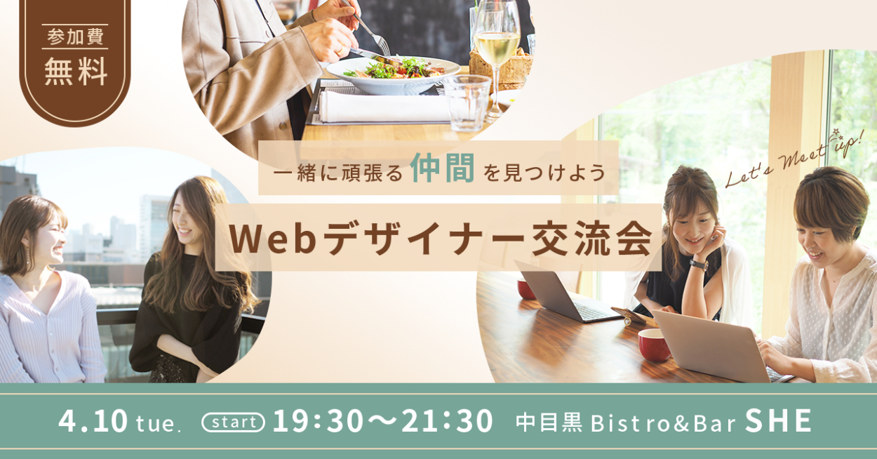 - 「Webデザイナー交流会」の告知バナーであることが一目でわかるように中央にタイトルを配置しました。