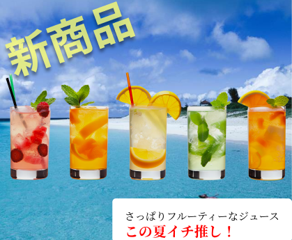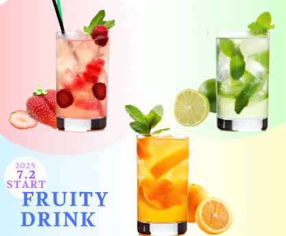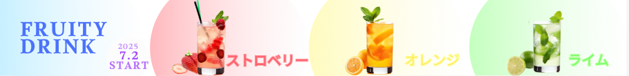 - それぞれの色を背景にし、入っている果物をドリンクのそばに添えてどんなドリンクなのか分かりやすくしました。