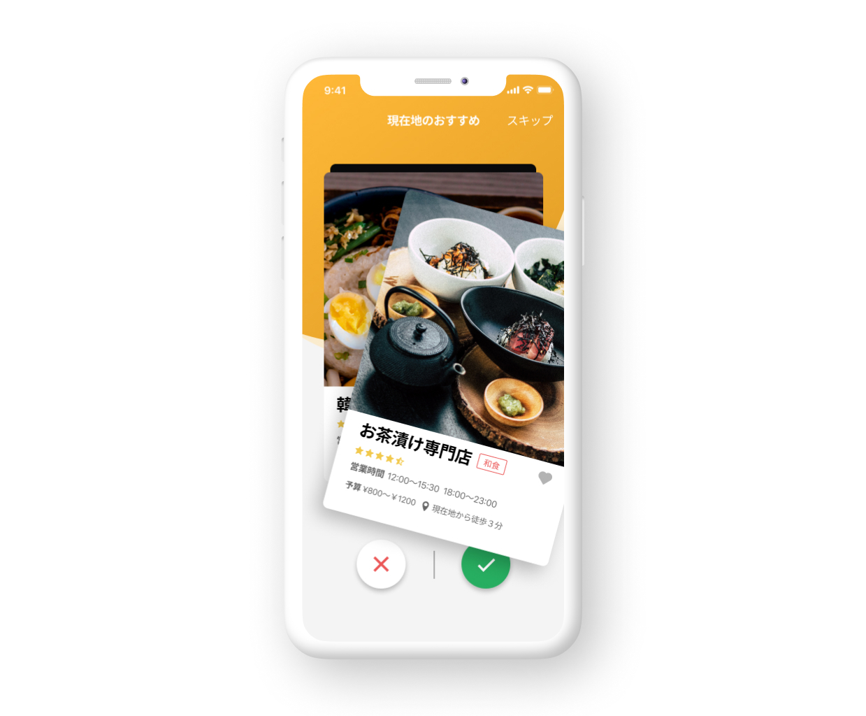 スワイプで近くのおすすめのお店を提案してくれるアプリ