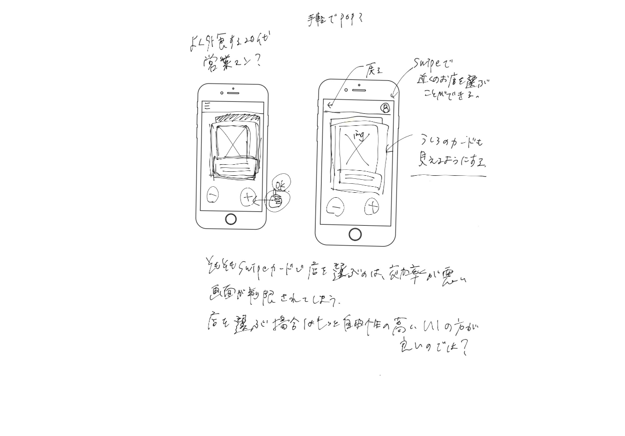 ターゲットは営業マンなので、結構知らない土地を歩くと想定して、お昼時とか、おすすめの飲食店がユーザーの好みに合わせて提案してくれるアプリだったら便利だなと思いました。