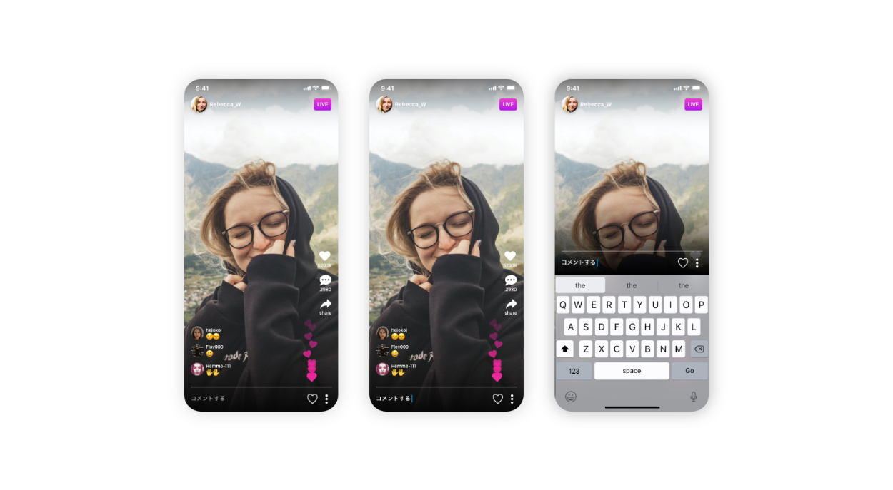 ほとんど、インスタのライブ配信画面を参考にしてます。