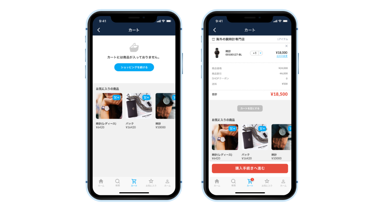 カート内の画面ではなく、お気に入りの商品の画像を追加することでさらなる商品の購入を促すようにしてみました。