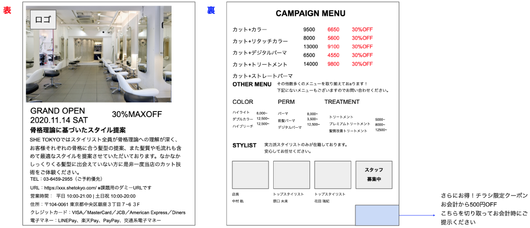 架空の美容室オープンに際したポスティング用フライヤーの制作依頼。
