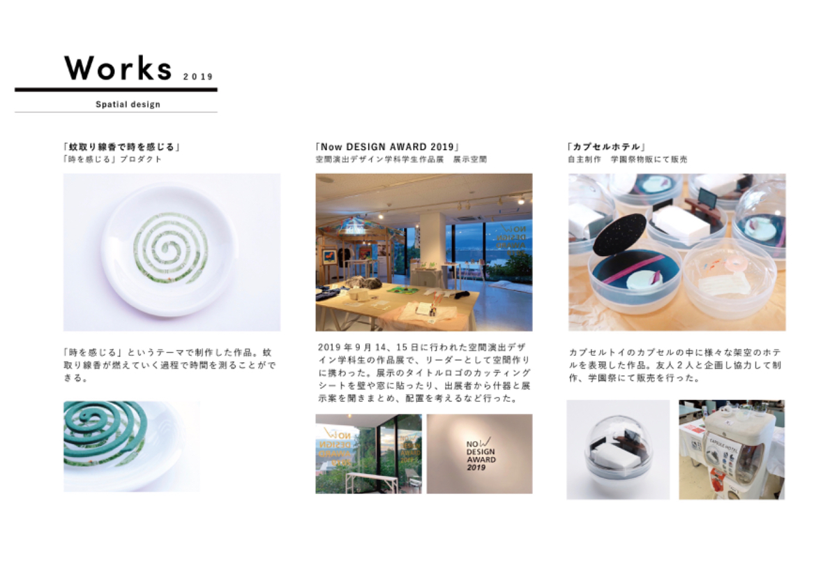 空間演出デザイン学科での課題制作や、自主制作など