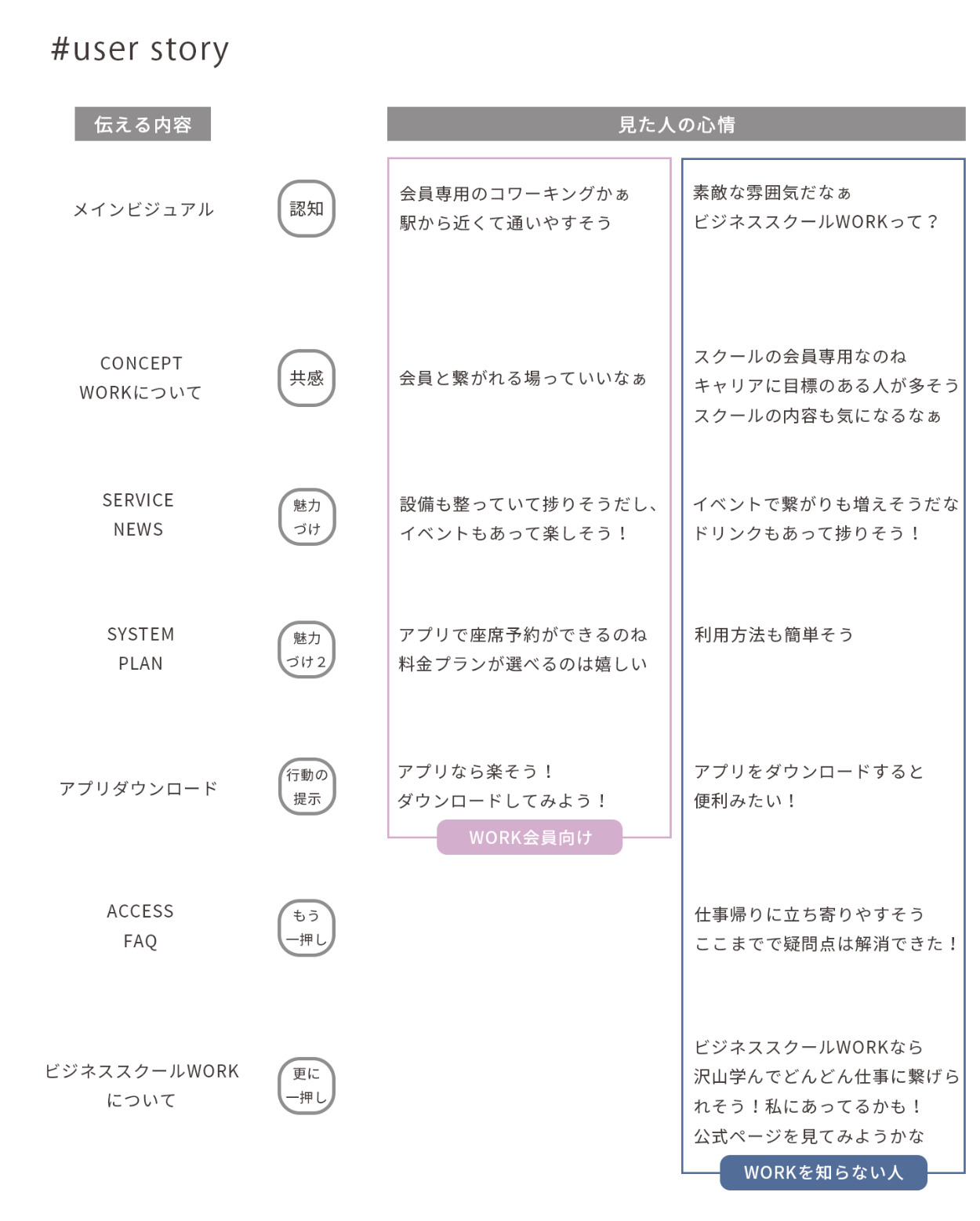 競合との差となる部分はどこか、どの順番で読み進めるとユーザーにとってほしい行動にたどり着いてもらえるのか、さまざまなサイトを参考に制作しました。