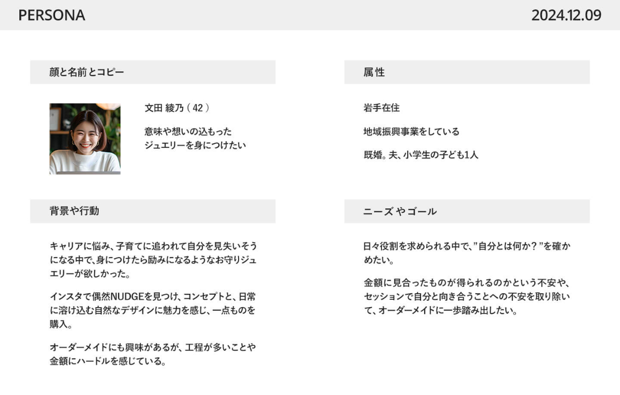 目的とターゲットを踏まえ、以下のようなペルソナを設定しました。