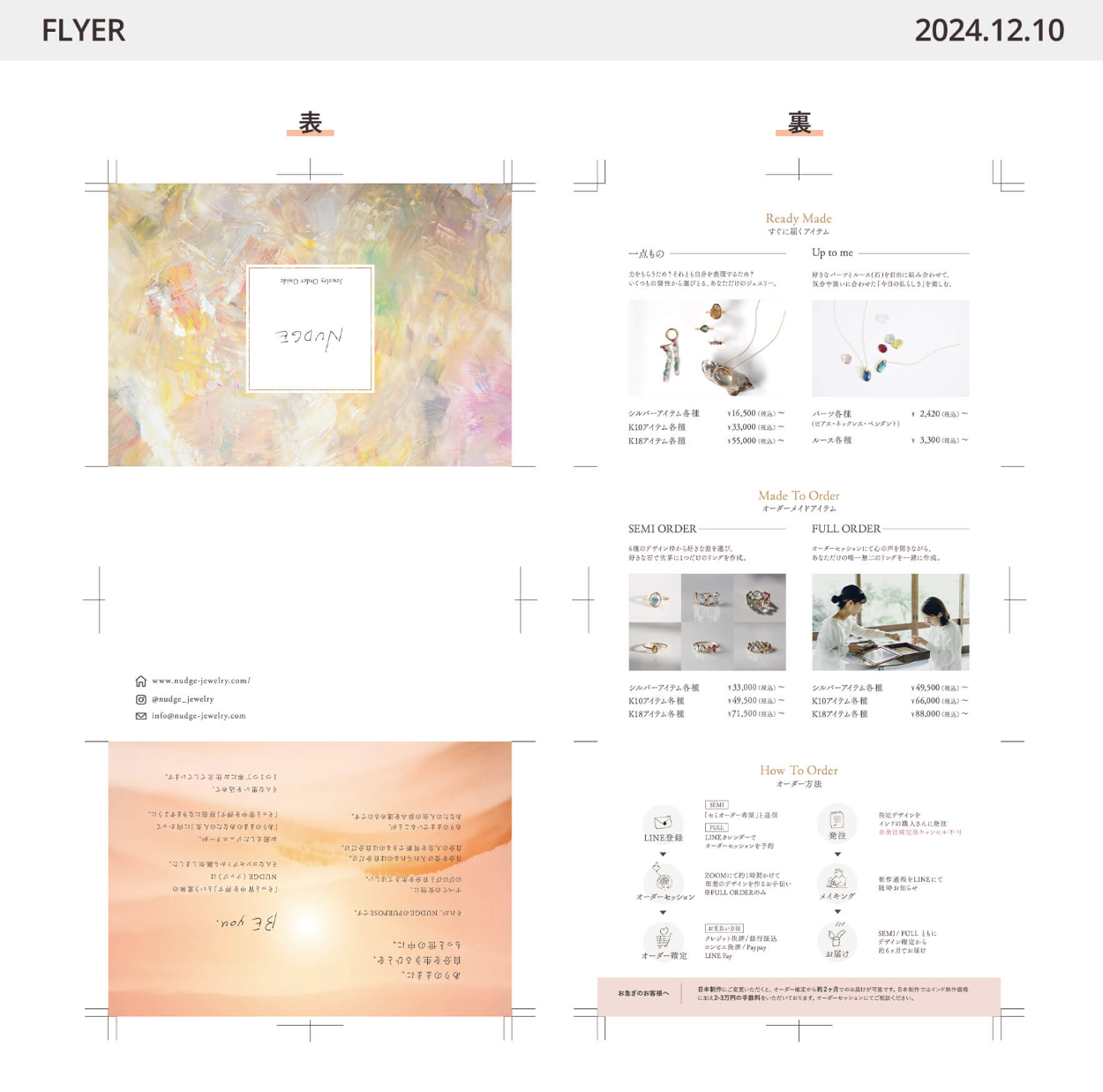 天然石ジュエリーブランド「NUDGE(ナッジ)」のフライヤーコンペへの応募作品。 【制作時間:47時間 / 制作期間:2週間 /使用ツール:Illustrator 】