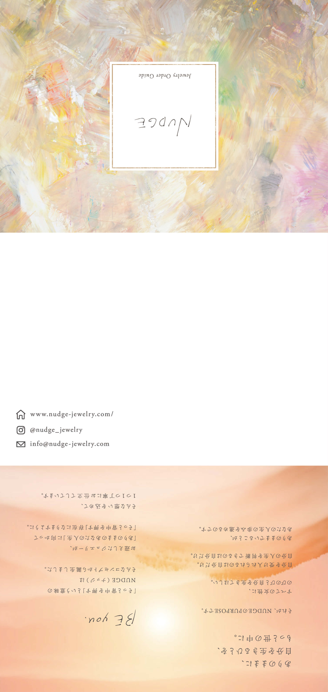 クライアントから提供されたロゴの中から「Jewelry Order Guide」というフレーズが入ったNUDGEロゴを配置しました。それにより「NUDGE」だけのロゴを配置した場合よりも、オーダーメイドに踏み出せずにいるターゲットの興味を引く効果を狙いました。