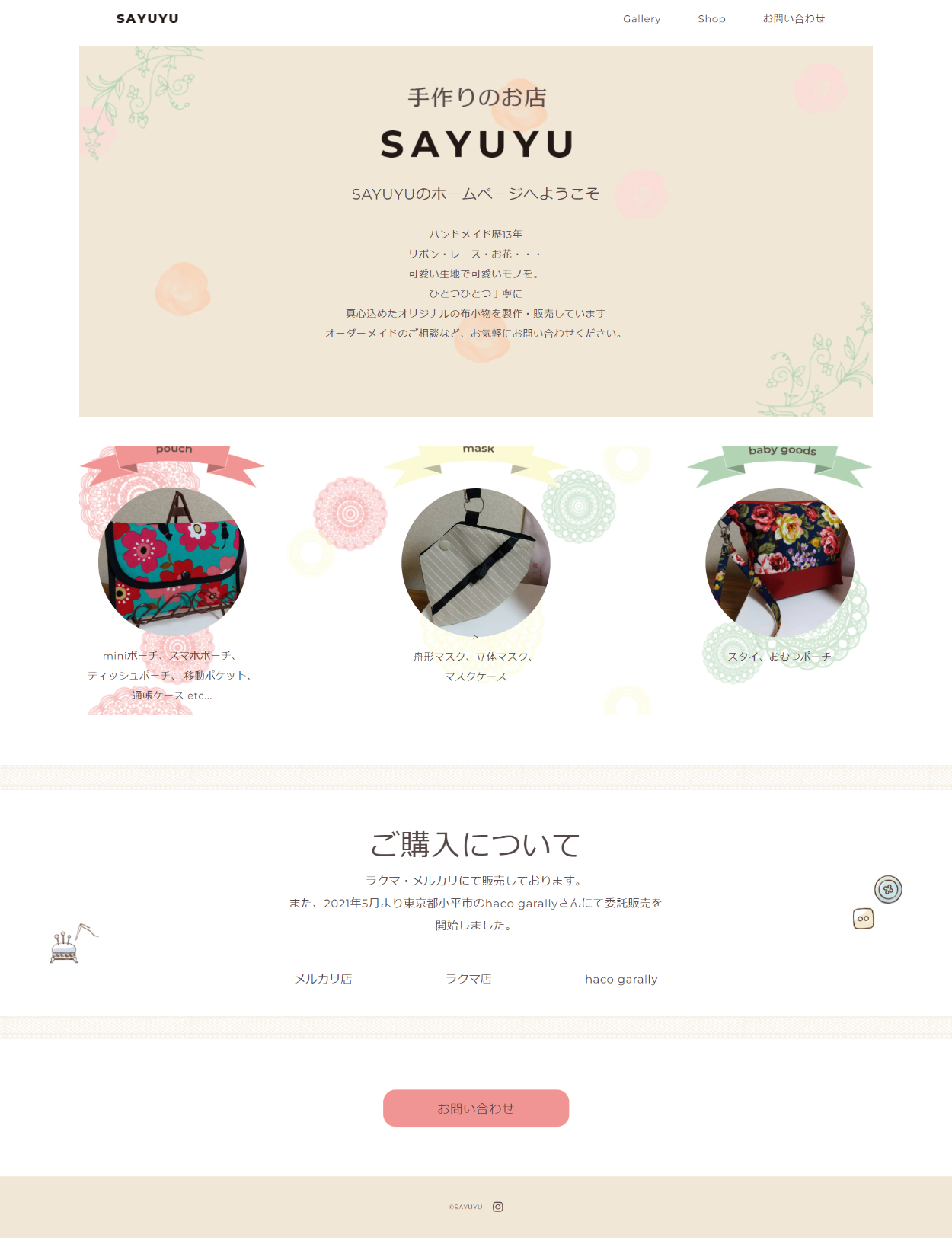 商品のイメージや作り手の思いが伝わるようなデザイン、見やすく分かりやすいサイト設計を心がけました。ギャラリーページでのモーダルの実装に苦戦しましたが、ライブラリを使用しないコードの書き方を学ぶことができました。