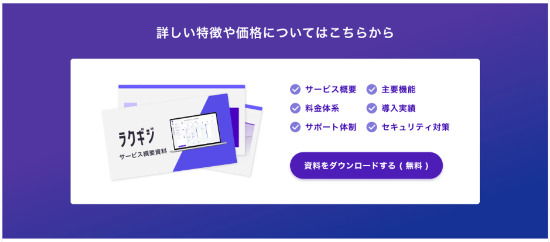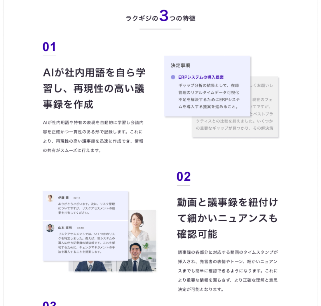 1つ目の特徴を、競合には見られなかった『ラクギジ』ならではの強みに変更しました。