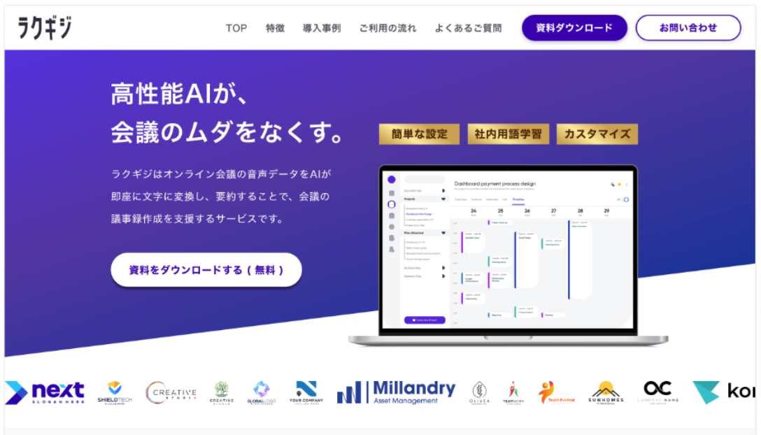 株式会社ラクギジ|LPサイト|AI議事録作成サービス