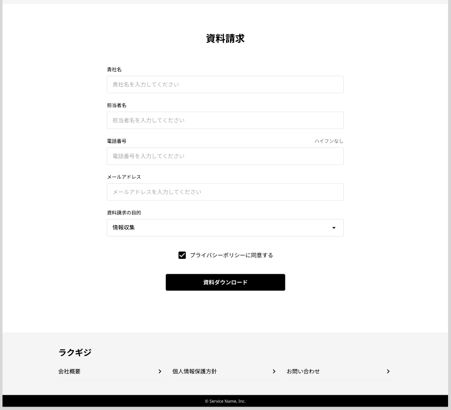 ⑧ 資料請求・フッター