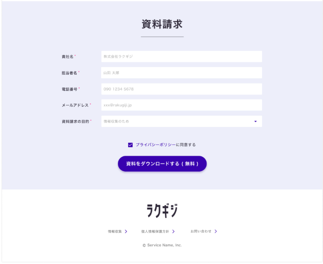 CV率を上げるため、資料の内容を記載。サイト訪問者に安心感を与える効果を狙っています。