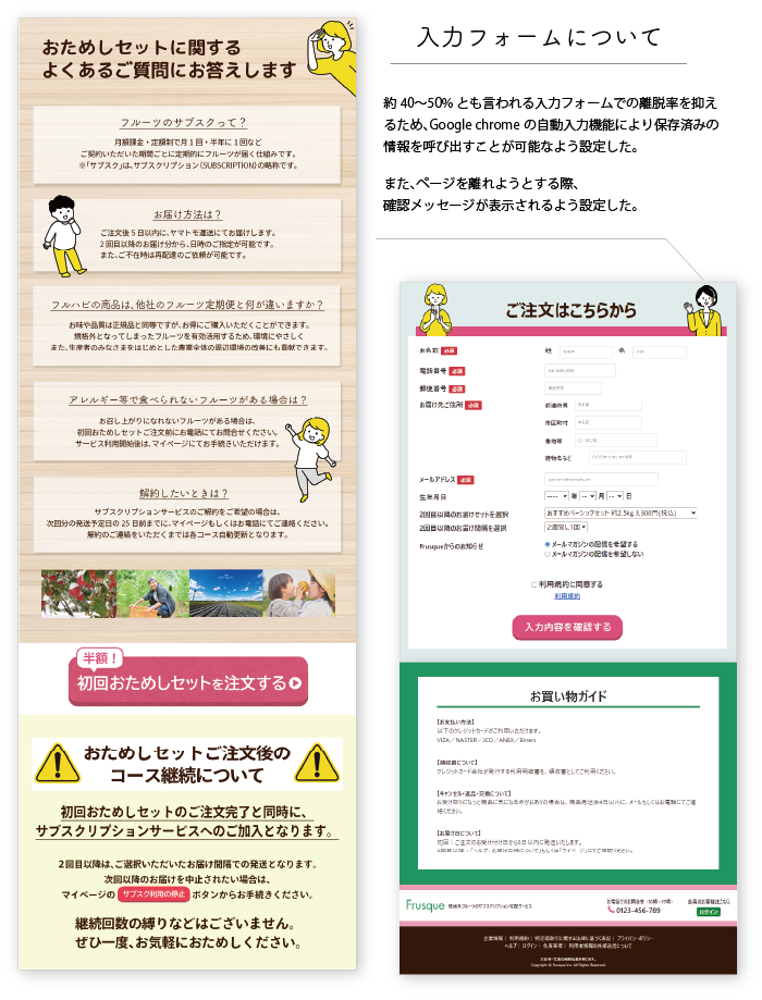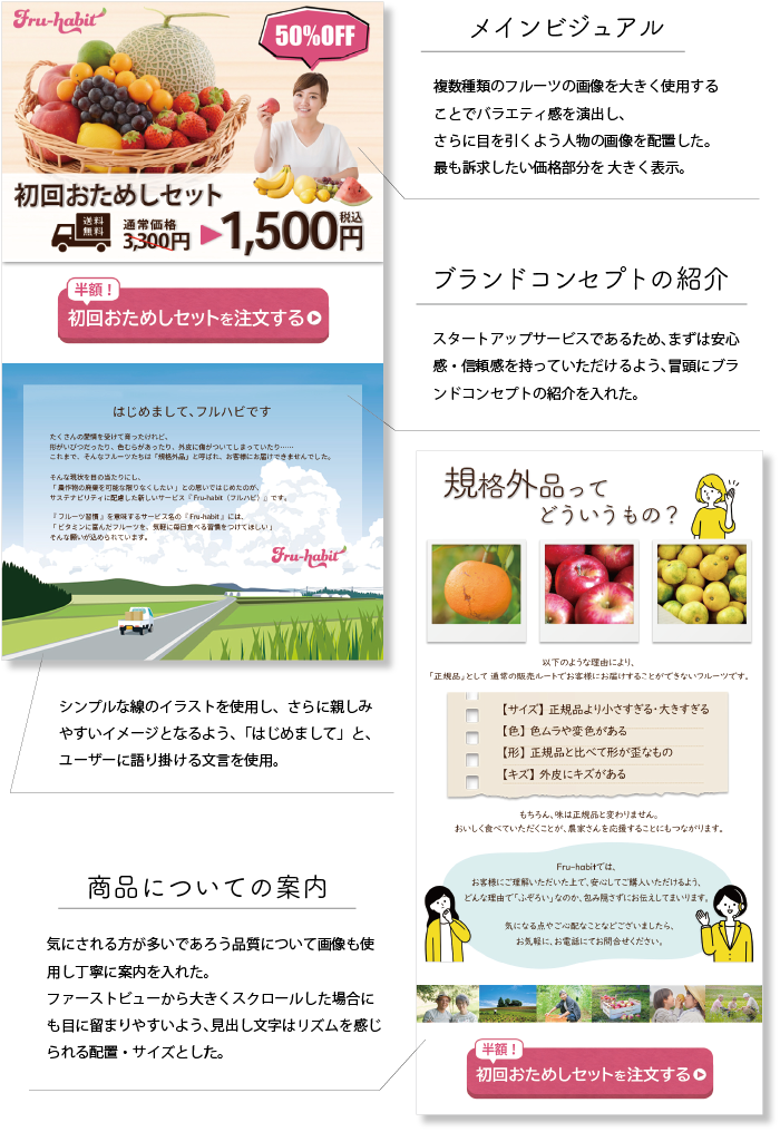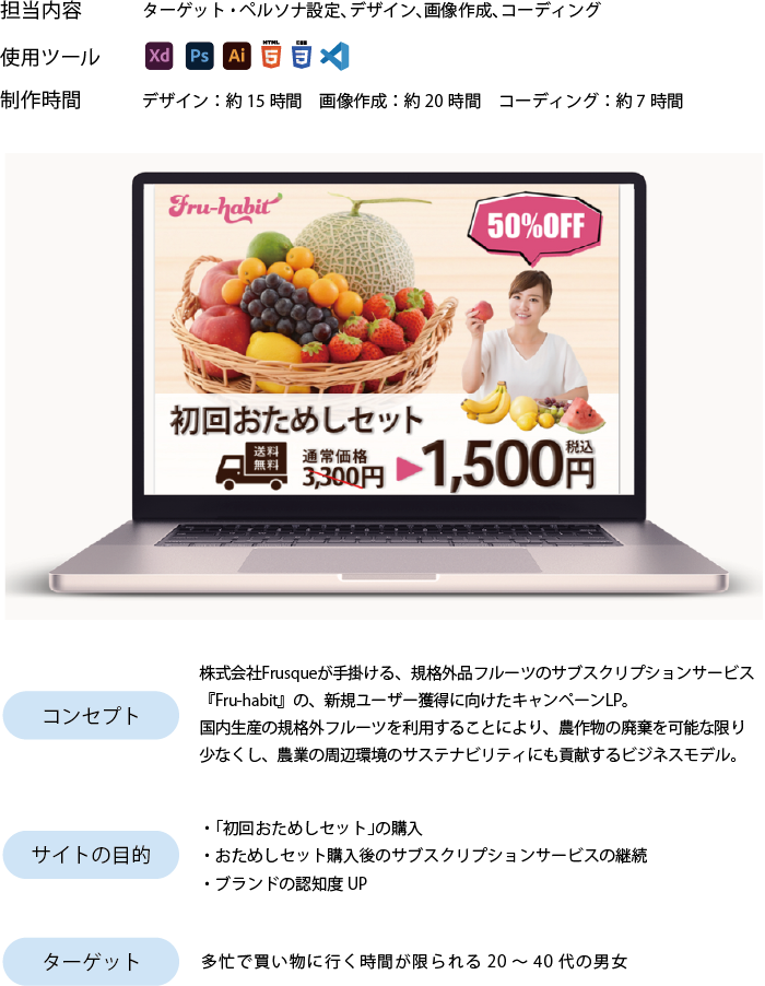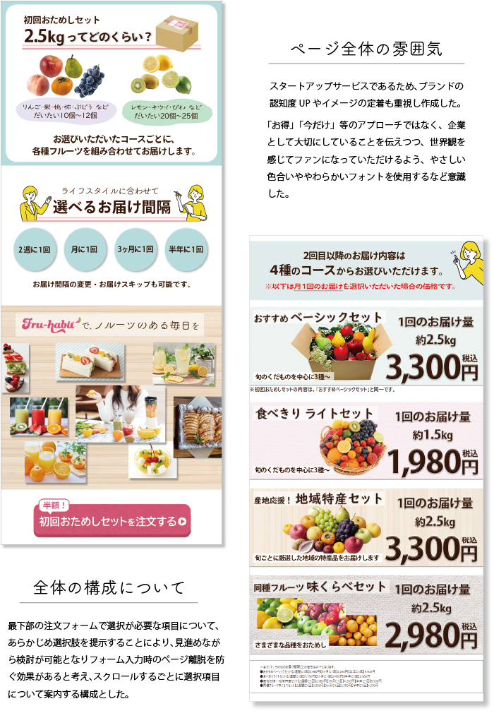 「 果物のサブスク Fru-habit 」 キャンペーンLP(架空のサイト)