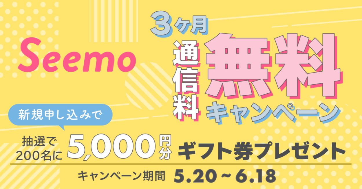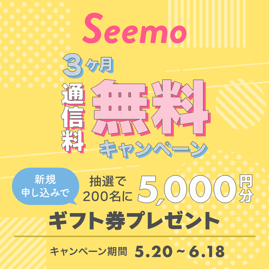 スクールの課題で、格安SIM業者(架空)Seemoの新規入会キャンペーンの打ち出しと新規申し込み促進のバナーを作成しました。お得感が伝わることを第一に考え、流行のあしらいを意識しポップなデザインになるようにしました。