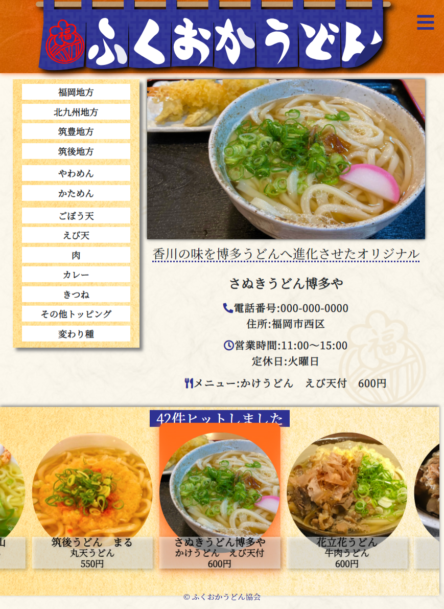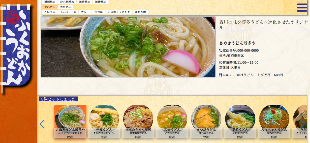 基本はうどん店の検索をビジュアルからわかりやすいように仕上げている