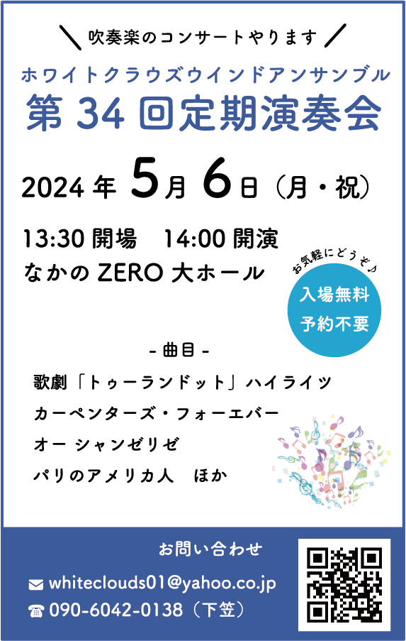 演奏会告知:区報用バナー作成 うさちゃんピース WEBディレクター OVERVIEW お世話になっているアマチュア吹奏楽団の演奏会告知用バナーです。 YEAR 2024 <要項>中野区報への掲載用保存形式:illustrator EPSサイズ:縦76mm×横48mm色:CMYK 総インキ量340%以下 ※リッチブラックはC60 M40 Y40 K100文字:アウトライン化<制作ポイント>親しみやすい雰囲気を出すフォントを使用区報への掲載を踏まえ、視認性UPのためシンプルなレイアウトにメインカラーはモノトーン+楽団ロゴから青色を抽出制作物▼
