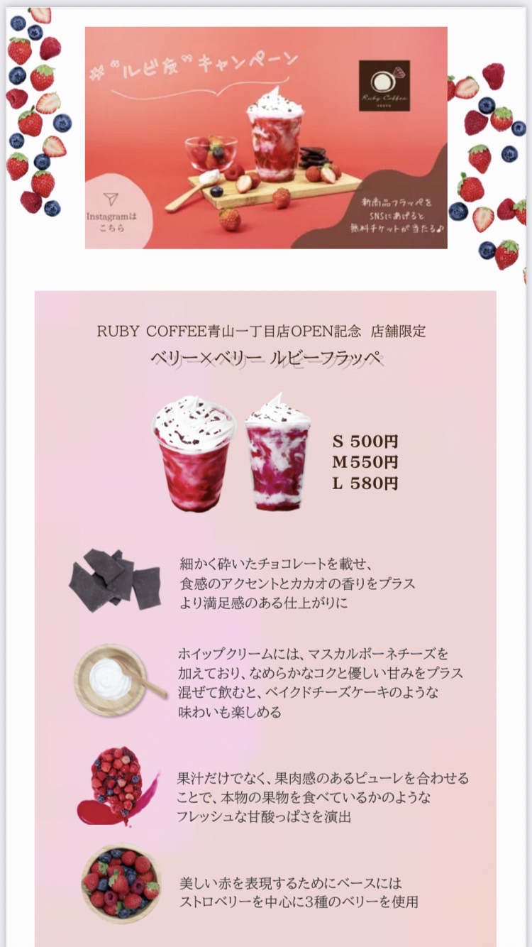 ・RUBY COFFEE青山一丁目店のOPEN記念の期間及び店舗限定の商品