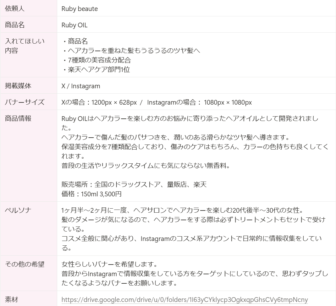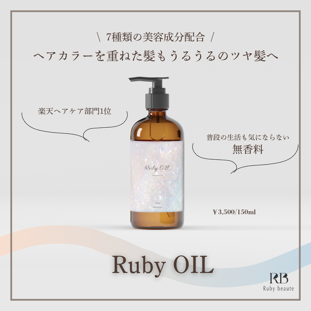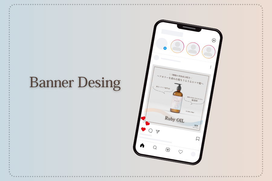 ・RubyOil(商品名)の下方にパッケージのイメージでもあるピンクとブルーを使用したグラデーションウェーブを描きました。