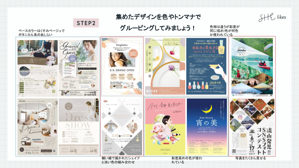 20代後半〜30代くらいの女性向け雑誌での企画であるため、「おとなかわいい」イメージでイメージボードを作成しました。その中でフォトコンテストのフライヤーに適した、写真を多く載せられるデザインを参考にしつつ、楽しい旅を連想する明るくてポップなカラーを使用することを決めました。