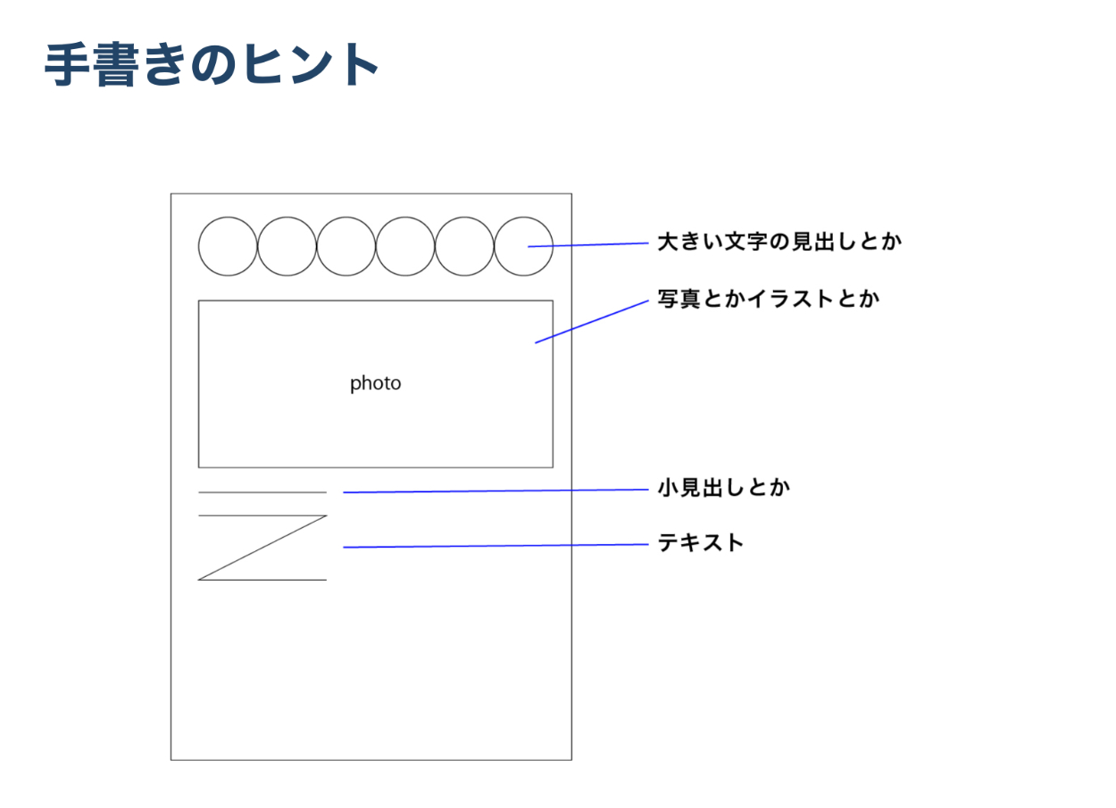 下の手書きのヒント以外、特に教えずにまずはざっと作ってみる。