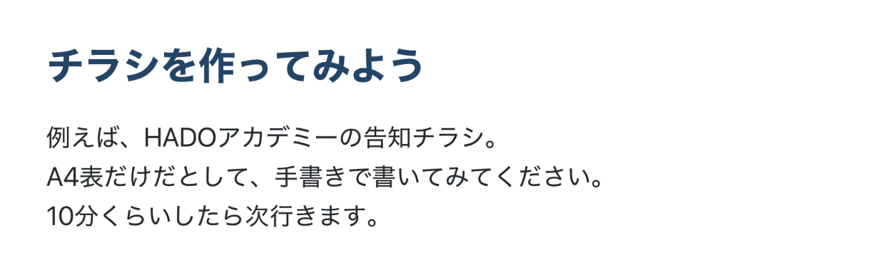 HADOアカデミーという、実際に行っている施策を題材に、チラシを作ってみる。