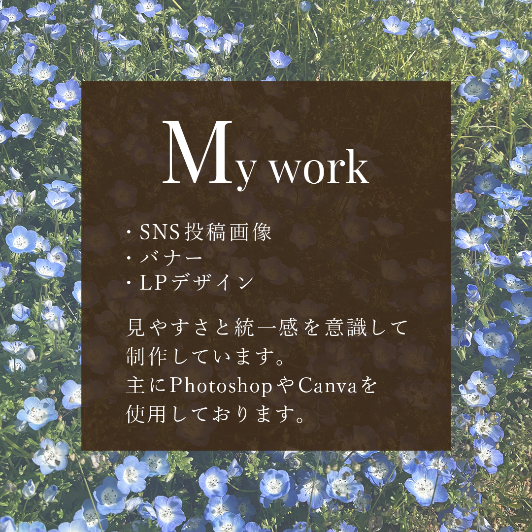 トライアル制作の指定テーマ:Instagramでの投稿を想定し、自身の魅力を伝える自己紹介画像を制作。2~4枚。