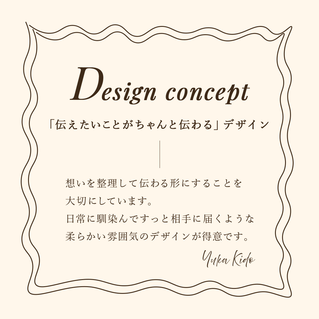 はじめまして。WebデザイナーのYukaです。伝えたいメッセージがちゃんと届くようなデザインを心がけています。柔らかい雰囲気の世界観づくりが得意です。
