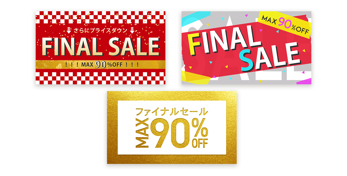 ・テキストだけでお得感が伝わるよう、金色を使用したり、紙吹雪をイメージした装飾を使用。