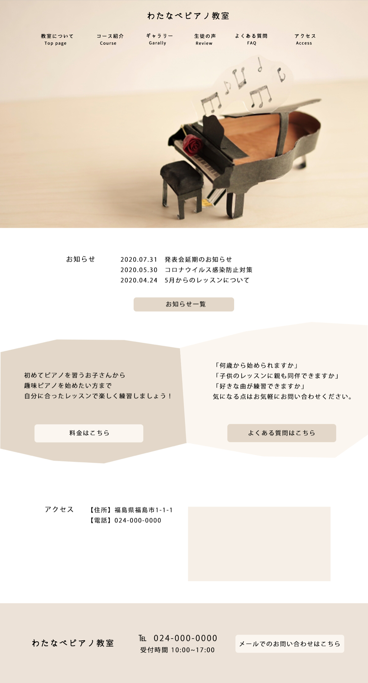 LP/トップページデザイン 𝐜𝐫𝐞́𝐚 日本語教師/マルチクリエーター OVERVIEW 「Photoshop」を使用したLP/ホームページのトップページの制作が可能です。 ▼自主制作 旅行系LP▼自主制作 旅行ブログLP▼自主制作 ピアノ教室トップページ