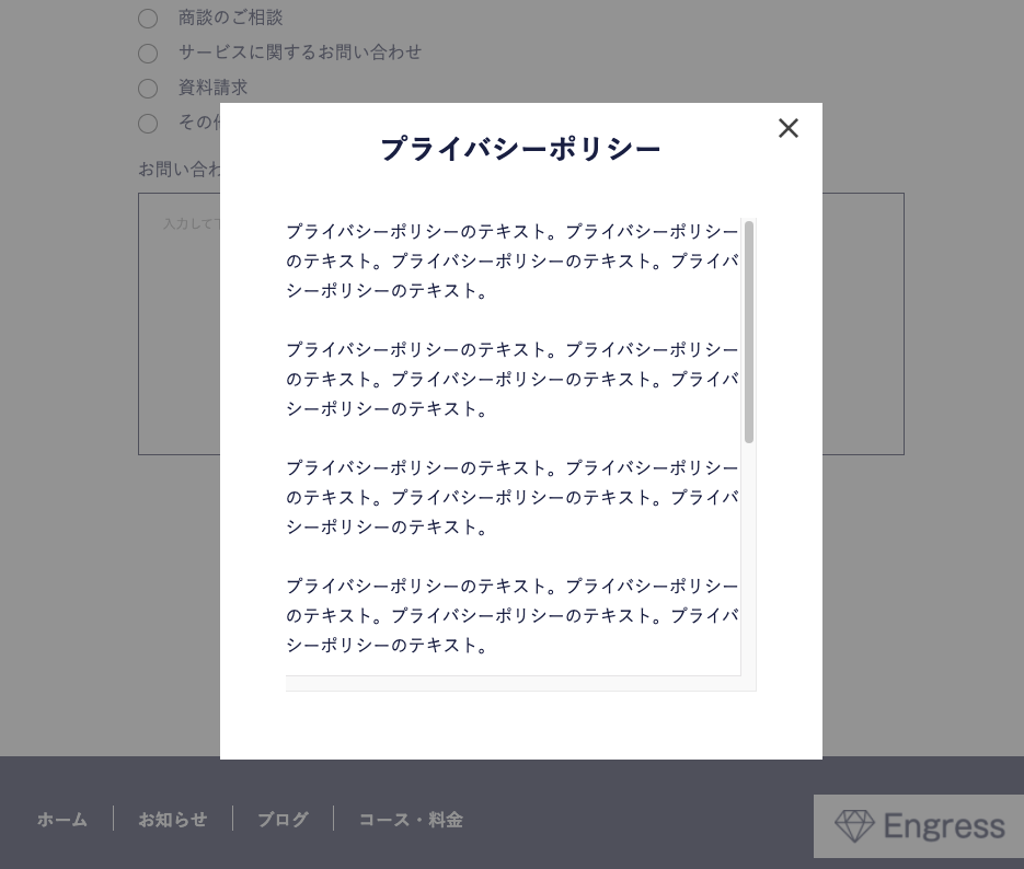 - プライバシーポリシーの内容をモーダルウィンドウで表現