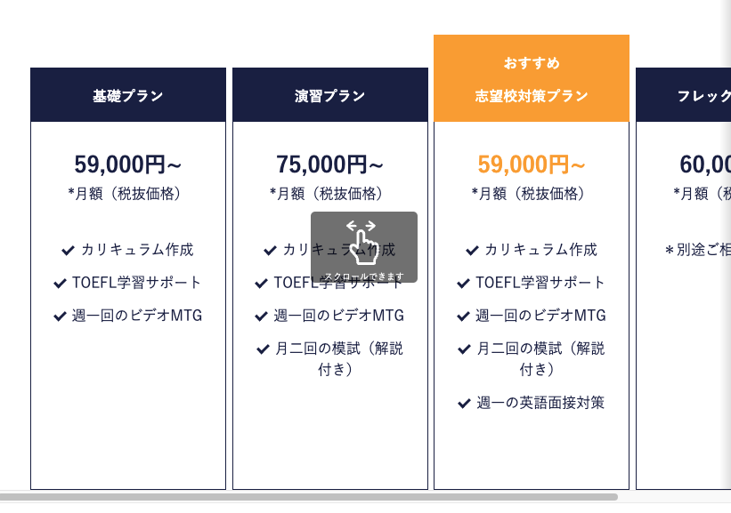 - 料金体系のプラン表がレスポンシブ時に横にスクロールする(スクロールヒント付き)