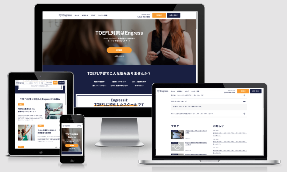 コーディング実績5:英語学習スクール【XDデザインデータからコーディング&WordPress化】